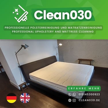 Eine professionelle Matratzenreinigung kann nicht nur dazu beitragen, Ihr Schlafumfeld gesünder zu machen, sondern auch die Lebensdauer Ihrer Matratze verlängern. Wenn Sie in Berlin leben, sollten Sie in Erwägung ziehen, Ihre Matratze regelmäßig reinigen zu lassen, um Ihre Gesundheit und Ihren Schlaf zu verbessern. Unsere Experten von Clean030 beraten Sie gerne.